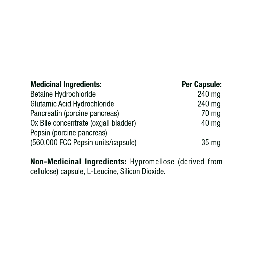 Caution: This product is contraindicated in patients with peptic ulcers. Consult a healthcare practitioner if symptoms persist or worsen. Consult a healthcare practitioner prior to use if you are pregnant or breastfeeding or if you have pancreatitis, pancreatic exocrine insufficiency or cystic fibrosis. Do not use if you are sensitive to pancreatic enzymes and/or pork proteins. Nausea, vomiting, abdominal pain/epigastric pain and/or heartburn have been known to occur, in which case discontinue use (and consult a healthcare practitioner).